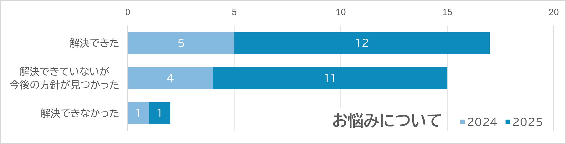 「悩みが解決できた」「すべては解決していないものの、今後の方針が見つかった」といったお声を多くいただき、考えを整理するきっかけとしてお役に立てたことを大変うれしく思っております。